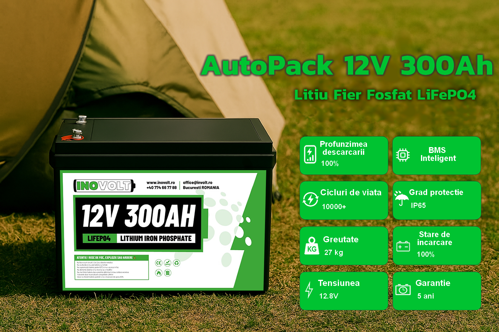 Acumulatorul de energie AutoPack 12V de la Inovolt.ro redefinește modul în care stocăm și utilizăm energia. Cu spatiu redus in comparatie cu produsele de pe piata de GEL sau Plumb-Acid, AutoPack 12V 300A este alegerea ideală pentru alimentarea: